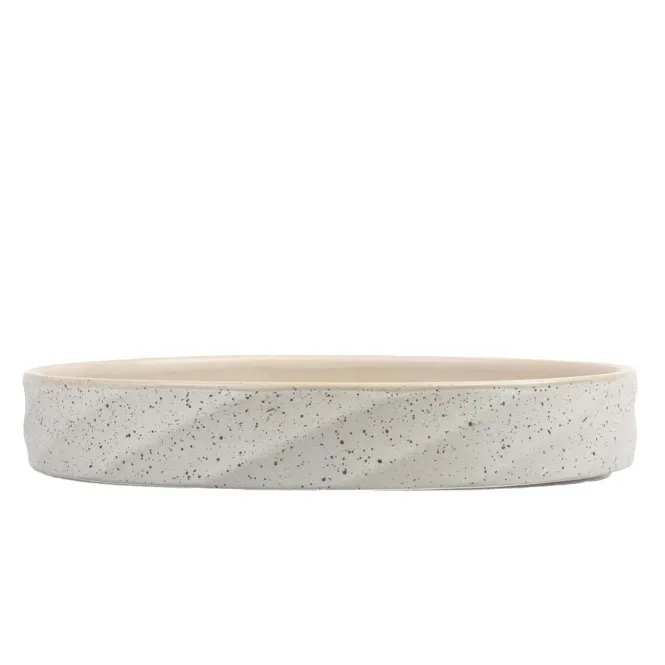 Erleben Sie zeitlose Eleganz am Fressplatz: Der flache Keramiknapf Stone Wavy Dune vereint robuste Handwerkskunst mit einem welligen Design, das jeden Raum veredelt.