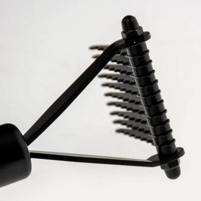 Aus robustem, verzinktem Edelstahl gefertigt, umfasst diese Harke 10 feine Schneidklingen, die Verklumpungen schonend lösen, ohne die Haut zu reizen. Der ergonomische Griff aus FSC-zertifizierter Buche mit dunkel gebeizter Oberfläche liegt perfekt in der Hand und gewährleistet müheloses Arbeiten bei Hunden und Katzen mit halblangem bis langem Fell.