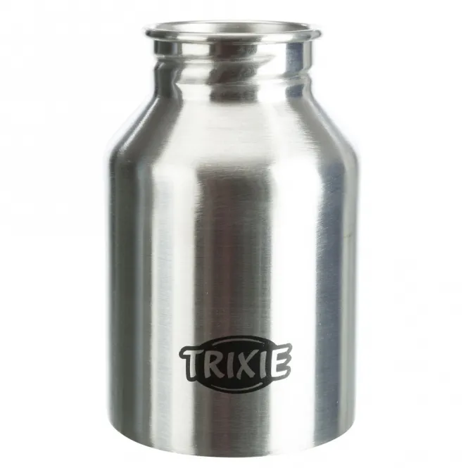 Frisches Wasser überall hin – diese clevere Edelstahl-Flasche mit integriertem Trinknapf macht lange Spaziergänge und Reisen zum Genuss für Ihren Vierbeiner.