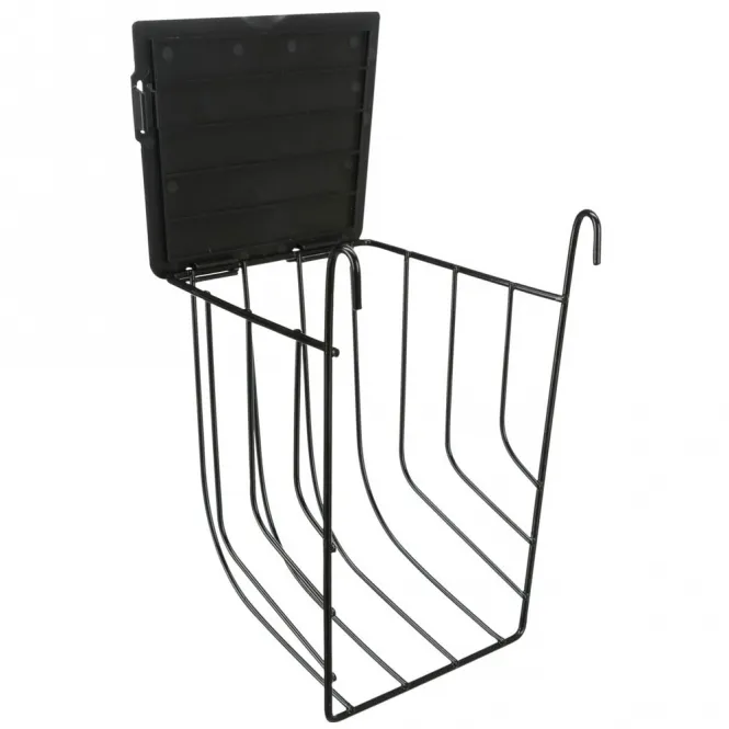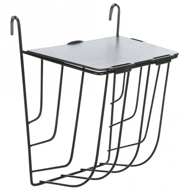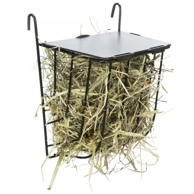 Hängen Sie diese elegante Heuraufe einfach ein und sorgen Sie für sauberes, leicht zugängliches Futter. Der integrierte Deckel schützt vor Verschmutzung und minimiert Verletzungsrisiken, während die pulverbeschichtete Metallkonstruktion höchste Langlebigkeit garantiert. Ein robuster Kunststoffdeckel vervollständigt das schlichte, schwarze Design in kompakten Maßen.