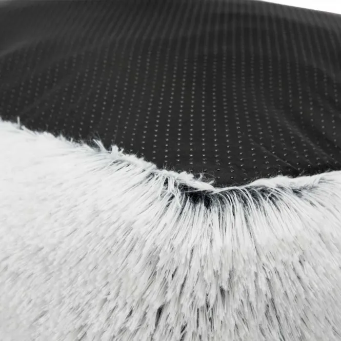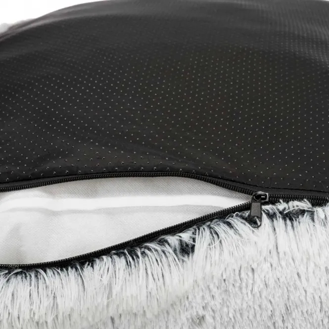 Der langhaarige Plüschbezug aus hochwertigem Polyester umhüllt Ihren Liebling in sanfter Wärme und verleiht ein edles weiß-schwarzes Design, das perfekt in jedes Interieur passt. Die extra hohe Füllung aus Polyestervlies mit 20 cm Dicke sorgt für optimale ergonomische Unterstützung – ideal für große Hunde, die es lieben, sich auszustrecken.