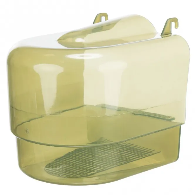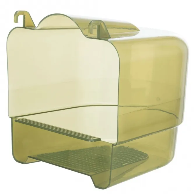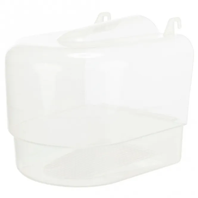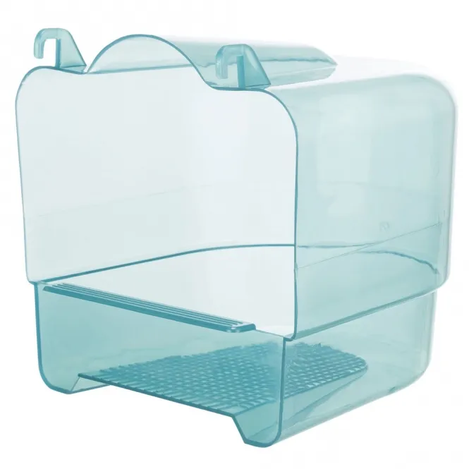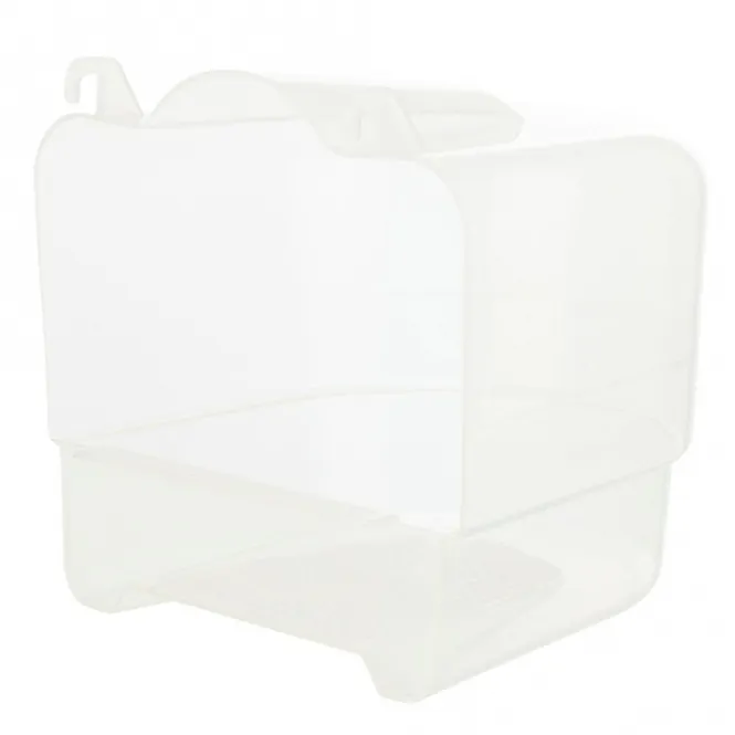 Hergestellt aus robustem, pflegeleichtem Kunststoff, hängt es nahtlos vor die Käfigtür und lädt zu ausgiebigen Badestunden ein. Die optimale Gitteröffnung von 15,5 x 11 cm gewährleistet mühelosen Zugang, während die kompakten Maße von ca. 15 x 16 x 17 cm (Höhe ca. 16 cm) platzsparend wirken.