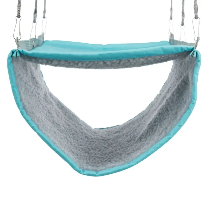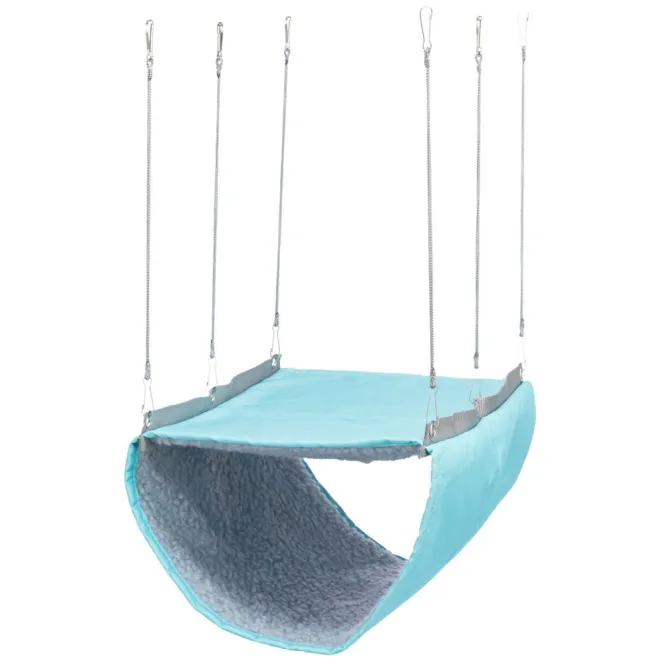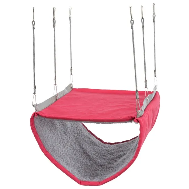 Diese zweistöckige Hängematte schafft nahtlos Ebenen für ausgiebige Klettertouren, gemütliches Ruhen oder neugieriges Erkunden. Dank vier integrierter Haken montiert sie sich im Handumdrehen am Gitter – bereit für endlose Action.