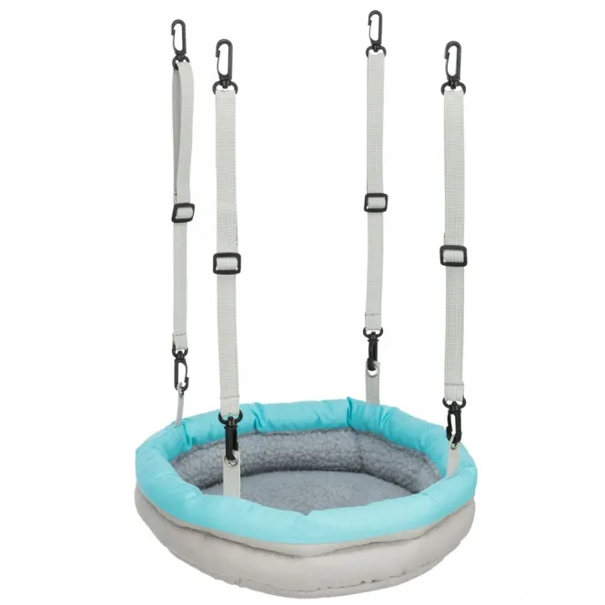 Perfekt für vielseitigen Einsatz in jedem Käfig: Das weiche Bett aus hochwertigem Nylon und Lammfellimitat, gefüllt mit atmungsaktivem Polyestervlies, lädt zum Kuscheln ein. Der verstärkte Boden mit stabiler Pappeinlage sorgt für Langlebigkeit, während die stufenlos verstellbaren Nylongurte ein müheloses Einhängen am Gitter ermöglichen.