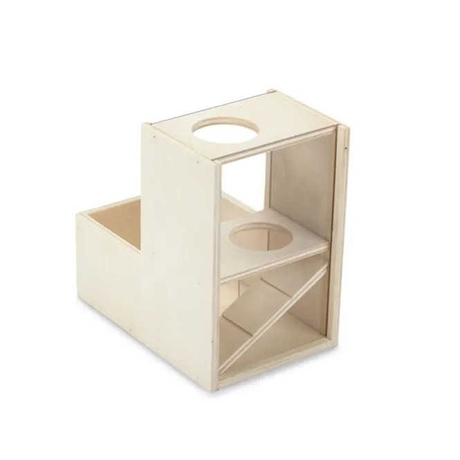 Hergestellt aus robustem, natürlichem Holz, das selbst beim eifrigsten Anbeißen schadlos bleibt. Clever gestaltete Löcher und mehrstufige Böden laden zu endlosen Kletterpartien ein und fördern die natürliche Beweglichkeit Ihrer kleinen Lieblinge.
