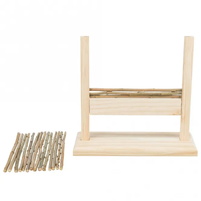 Unbehandeltes Holz und Weide für sicheres, instinktives Beißen und Klettern.