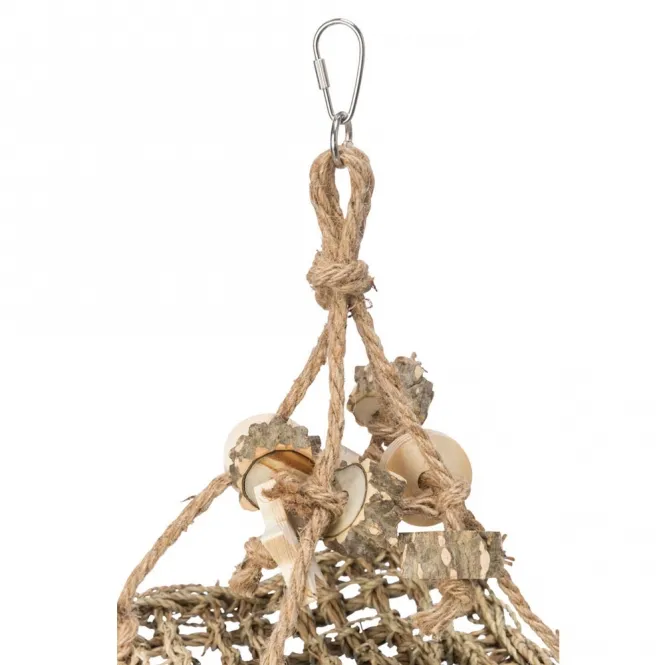 Die Schaukel aus robustem Seegras und glattem Holz lädt zu aktiven Momenten ein. Mit Maßen von ca. 19 × 19 cm passt sie perfekt in Volieren oder Käfige und bietet ausreichend Platz für zierliche Bewohner wie Mäuse, Kanarien oder Wellensittiche. Auch Kleinnager profitieren von der stabilen Konstruktion und dem natürlichen Design.
