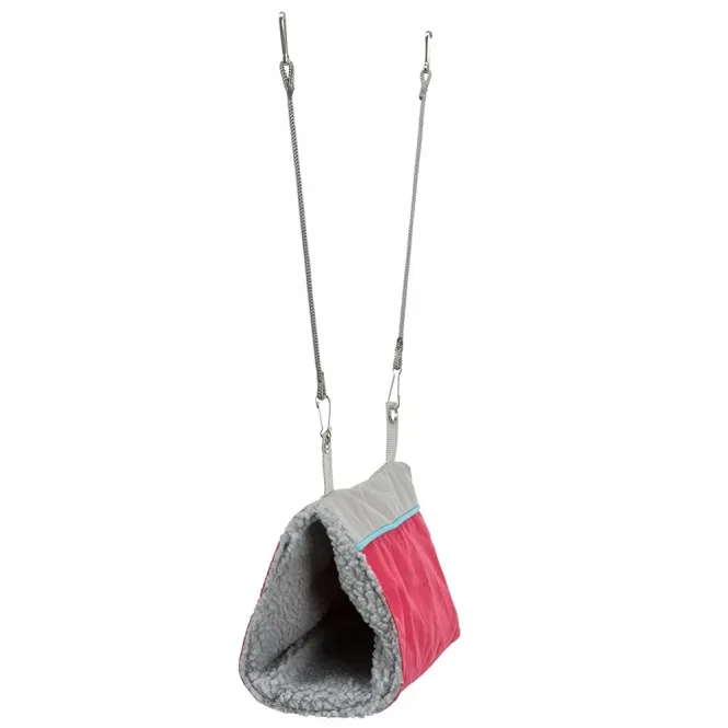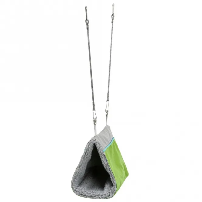 Umhüllt aus weichem Polyester mit einer einladenden Lammfell-Optik schafft diese Höhle einen Kokon purer Geborgenheit. Hängen Sie sie einfach ein, und schon wird sie zum Lieblingsplatz für ausgiebige Nickerchen, spielerisches Verstecken oder entspanntes Kuscheln. Mit kompakten Abmessungen von 9 × 12 × 16 cm integriert sie sich mühelos in jedes Gehege und lässt Raum für Bewegungsfreiheit.