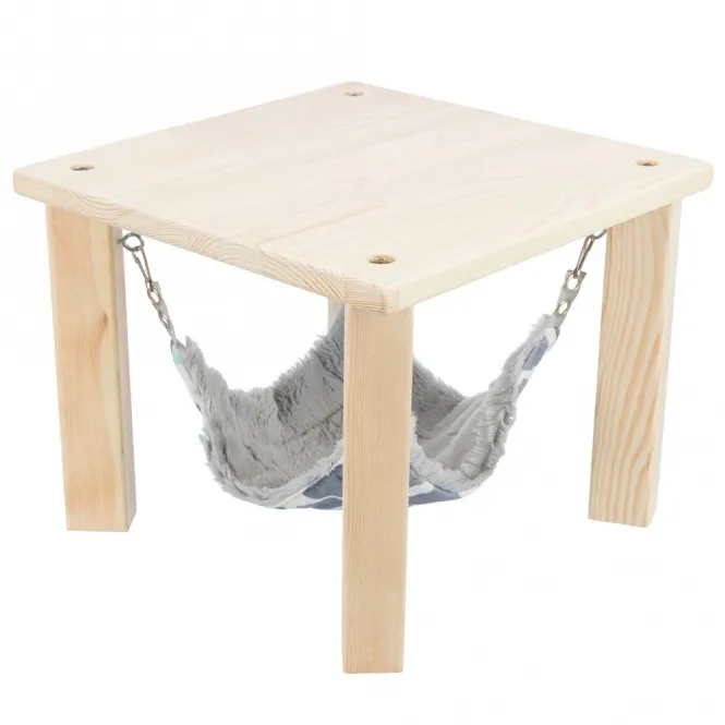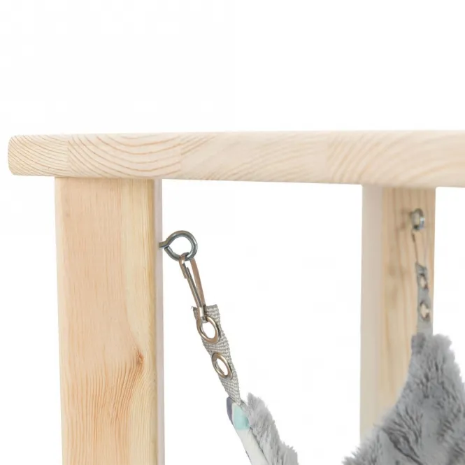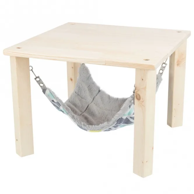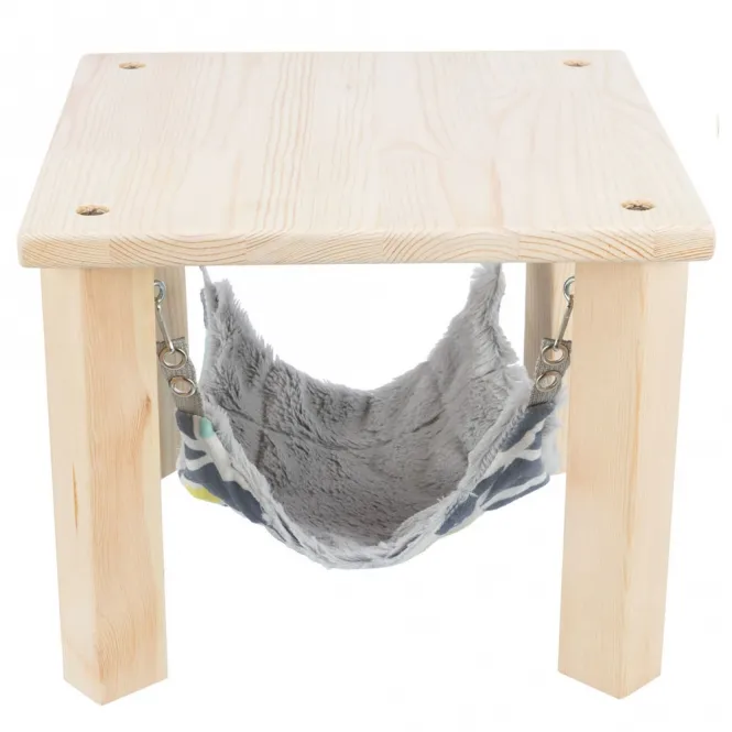 Dieser Unterstand aus robustem, unbehandeltem Holz vereint natürliche Wärme mit einem weichen Plüschbezug für ultimativen Komfort. Die integrierte Hängematte lädt zum Schaukeln ein und ist mühelos abnehmbar – einfach per Handwäsche pflegen und dank cleverer Ösen in zwei Höhen positionieren. So passt er sich perfekt an die Vorlieben Ihres Zwergkaninchens oder Meerschweinchens an.