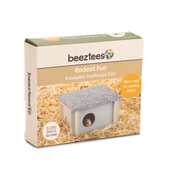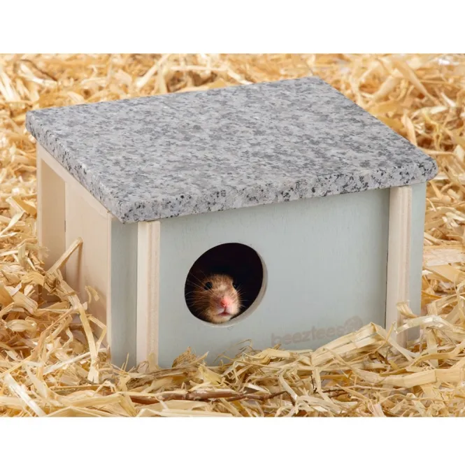 Dieses clevere Holzhaus integriert ein spezielles Granitdach, das selbst bei starker Hitze angenehm kühl bleibt. Der Stein speichert Kälte und strahlt sie gleichmäßig ab, sodass das Innere des Häuschens zuverlässig frisch bleibt. Ideal für Hamster, Mäuse oder andere kleine Bewohner, die in der Wärme schnell überhitzen.