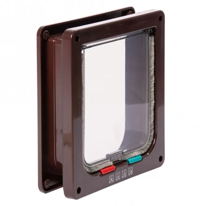 Ihrer Fellnase ein unbeschwertes Kommen und Gehen ermöglichen? Kein Problem! Die robuste Klappe passt nahtlos in Türen oder Wände bis 50 mm Dicke und bietet vier praktische Modi: Nur rein, nur raus, komplett verschlossen oder total frei. Der braune Ton verschmilzt elegant mit Ihrem Zuhause.