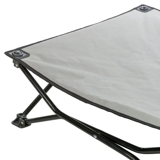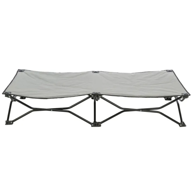 Robustes Oxford-Polyester umhüllt das Bett wasserabweisend und mühelos pflegeleicht – ideal für spontane Abenteuer. Das pulverbeschichtete Metallgestell bietet zuverlässige Stabilität bis 50 kg, während die clevere Faltmechanik es blitzschnell verstaut.