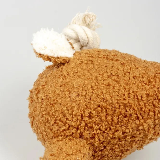 Sein lockiges, braunes Fell lädt zum innigen Schmusen ein und weckt urtümliche Jagdinstinkte. Der extra lange Hals erleichtert das mühelose Tragen und Werfen, während das integrierte dicke Seil mit Knoten von Kopf bis Po endlose Tollereien garantiert. Der verspielte Schwanz aus robuster Baumwollschnur sorgt für extra Action – ideal für aktive Hunde jeden Alters.