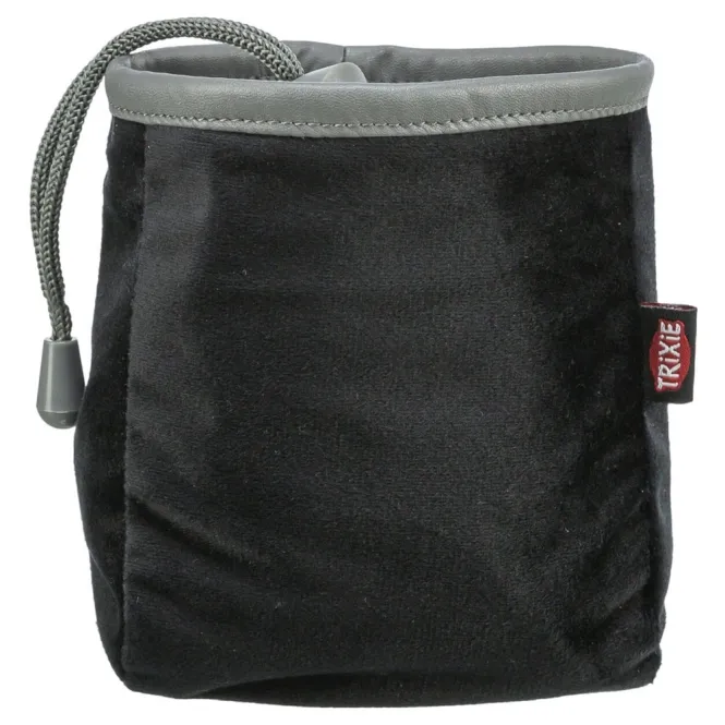 Unterwegs immer vorbereitet: Diese elegante Velours-Tasche hält Leckerlis griffbereit und macht Spaziergänge zum Trainingssieg.