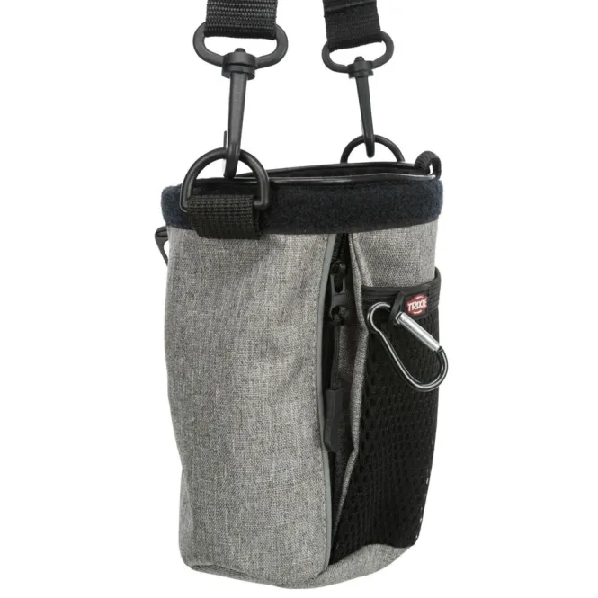 Karabinerhaken für Hundepfeife oder Clicker, praktische Außentaschen und reflektierende Elemente erhöhen die Sichtbarkeit bei Dämmerung. Hergestellt aus langlebigem Polyester, Maße ca. ø 12 × 17 cm – kompakt und griffbereit.