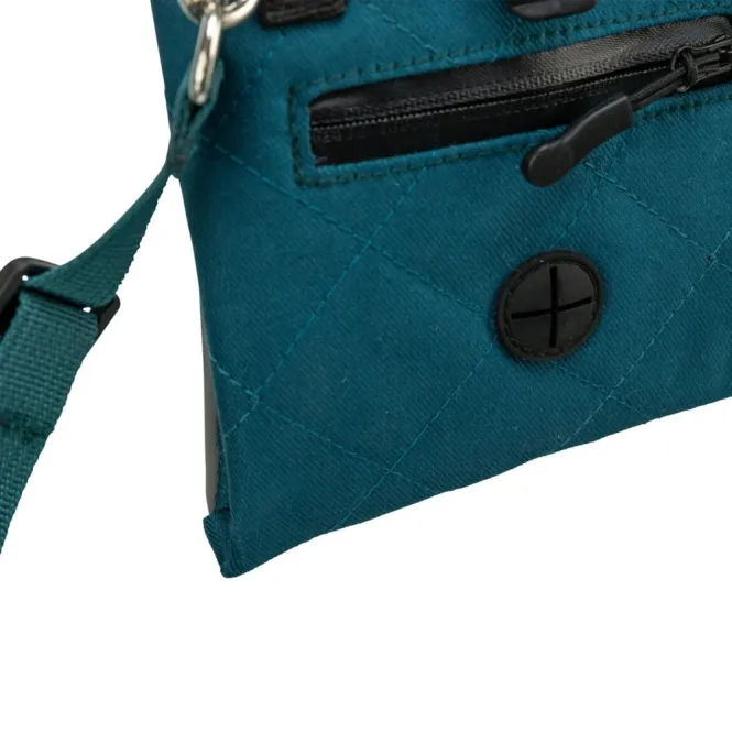 Befestigen Sie die Tasche bequem als Hüftgürtel mit verstellbarer Schlaufe oder Clip, oder wechseln Sie zum abnehmbaren Schultergurt für längere Touren. Die Außentasche schluckt Handy und Schlüssel mühelos, während der integrierte Kotbeutelspender für spontane Bedürfnisse sorgt. Reflektierende Akzente gewährleisten Sichtbarkeit in der Dämmerung. Robust gefertigt aus einem atmungsaktiven Baumwolle-Polyester-Mix in ansprechendem Petrol – bei kompakten Maßen von 15 × 18 × 2,5 cm passt sie überall hin.