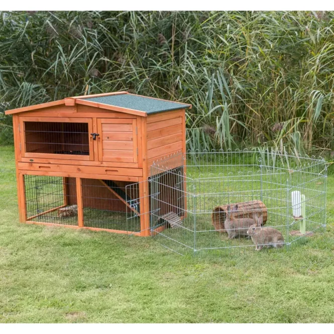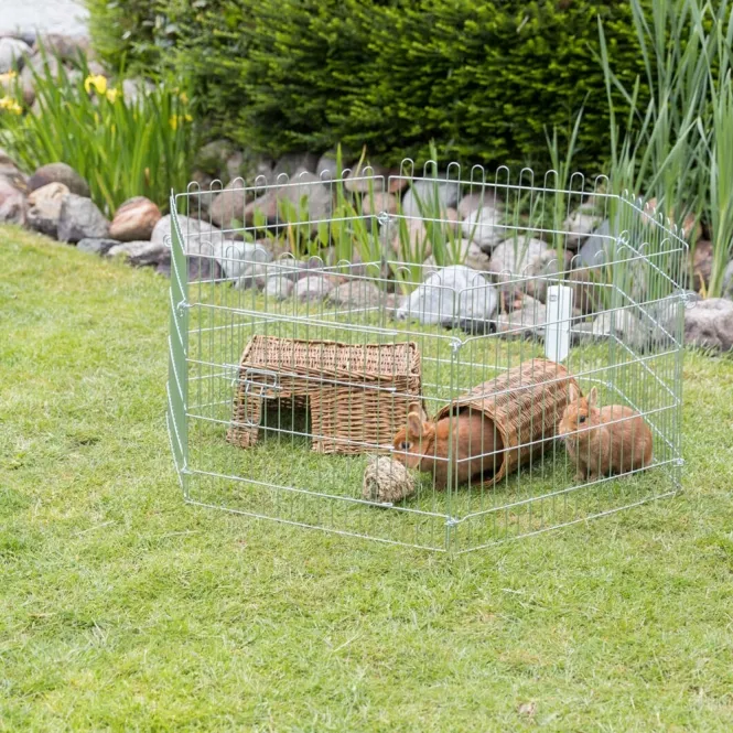 Schaffen Sie in Windeseile einen geräumigen Auslauf, der Ihren Kaninchen, Meerschweinchen oder Hamstern endlosen Spaß im Freien beschert. Die robusten Paneele aus verzinktem Metall widerstehen Regen und Wind, während die integrierte Tür einen bequemen Zugang ermöglicht.