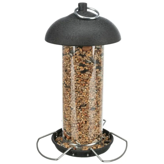 Das clevere Design mit abnehmbarem Dach macht das Nachfüllen zum Kinderspiel. Einfach öffnen, füllen, fertig. Pulverbeschichtetes Metall kombiniert mit robustem Kunststoff gewährleistet Langlebigkeit und Widerstandsfähigkeit gegen die Elemente. Die wetterfeste Konstruktion schützt das Futter vor Regen und Feuchtigkeit, damit es immer appetitlich bleibt.