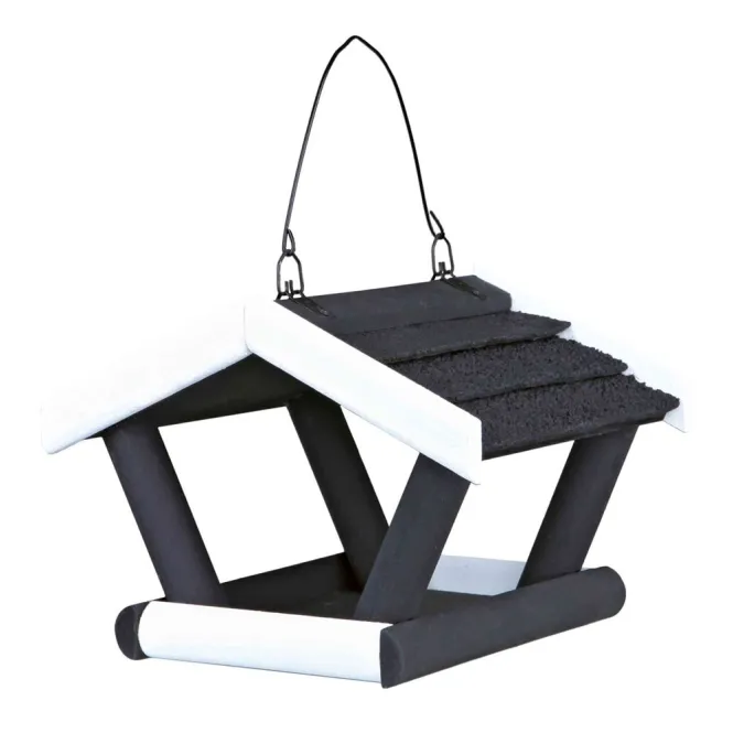 Zaubern Sie pure Gartenmagie herbei: Dieses stilvolle Hängende Vogelfutterhaus in schwarz-weiß lädt gefiederte Gäste ein und wird zum Highlight Ihres Außenbereichs.