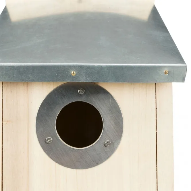 Gefertigt aus massivem Kiefernholz, lasiert für hervorragenden Wetterschutz. Verzinkte Metallkomponenten verhindern Rost, und der integrierte Spechtschutz hält unerwünschte Eindringlinge fern – pure Sicherheit für Ihre gefiederten Gäste.