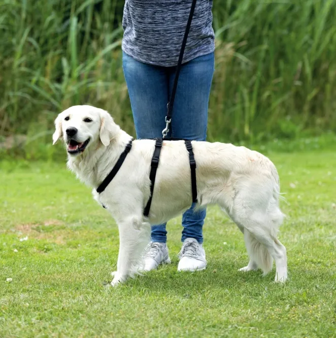 Dieses robuste Gurtbandgeschirr bannt ungewollte Ausbrüche in stressigen Momenten wie Feuerwerk oder lauten Geräuschen. Der smarte Taillengurt bietet doppelte Absicherung, während stufenlos verstellbare Bänder und Klettstreifen am Rücken eine maßgeschneiderte Passform für aktive Begleiter wie Labradore schaffen.