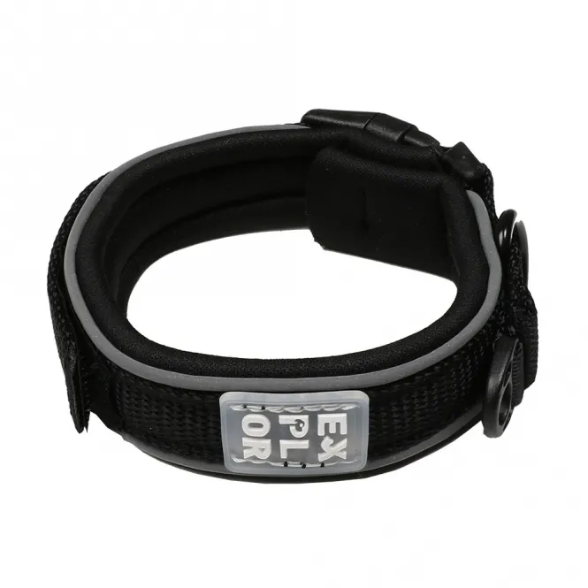 Der starke Klettverschluss passt sich flexibel von 52 bis 61 cm an, während der premium Edelstahl-D-Ring Leine und Anhänger sicher fixiert. Innenraum für Ihre Kontaktdaten – für den Fall der Fälle immer griffbereit.