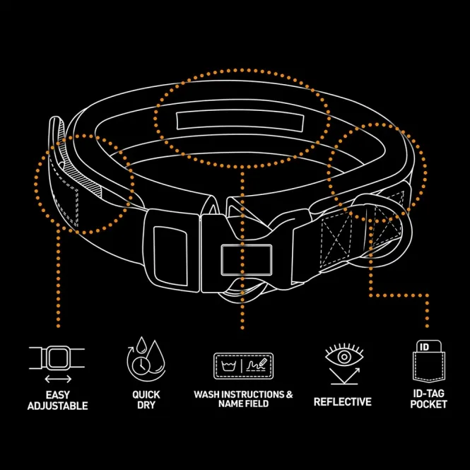 Geschmeidiges Neopren umhüllt den Hals sanft, ohne zu reiben, und trocknet im Nu nach Regen oder Spiel im Wasser. Die reflektierende Einfassung leuchtet bei Dämmerung hell auf, damit Sie und Ihr Hund immer sichtbar bleiben.