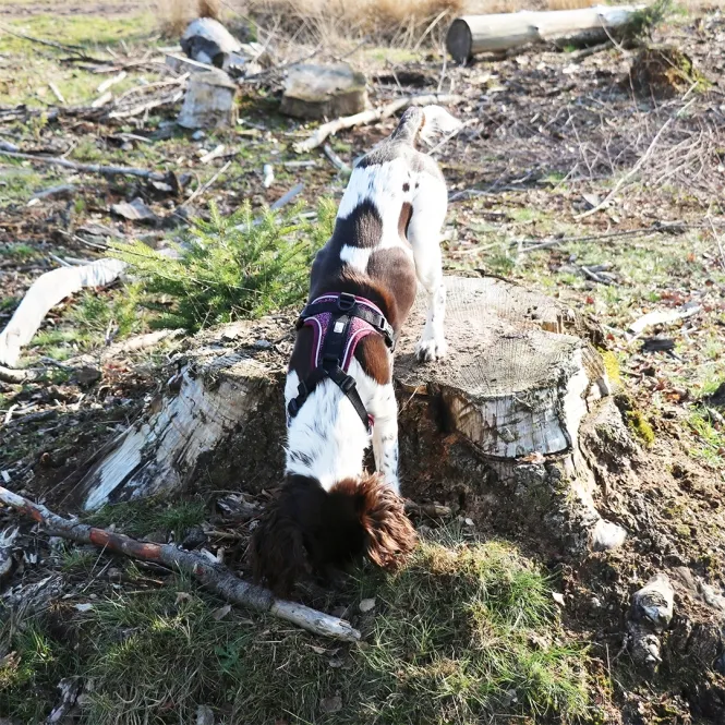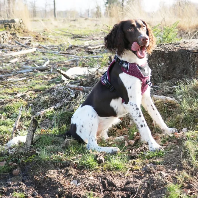 Entdecken Sie pure Freiheit und Kontrolle auf jedem Spaziergang – mit diesem ergonomischen No-Pull-Geschirr in edlem Plum Purple, das Ziehen sanft umlenkt und Ihren Vierbeiner schont.