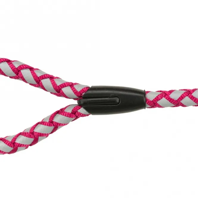 Diese reflektierende Leine aus robustem, rund geflochtenem Gurtband überzeugt durch ihre hohe Sichtbarkeit und Langlebigkeit. Mit einer Länge von 1 Meter und einem Durchmesser von 18 mm in der Größe L-XL passt sie perfekt zu mittelgroßen bis großen Hunden. Die leuchtende Fuchsia-Farbe sorgt für einen modischen Akzent, während die integrierten Reflexelemente für optimale Wahrnehmbarkeit sorgen.