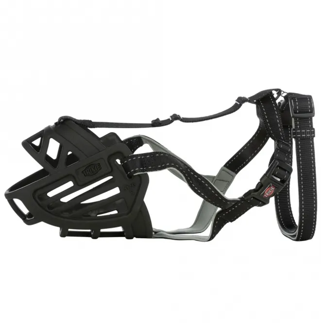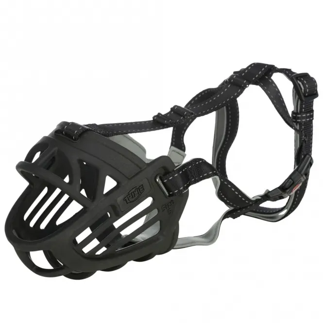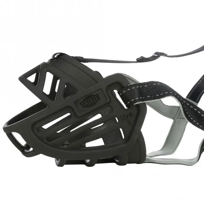 Aus robustem Gummi, Nylon und Neopren gefertigt, behält der Maulkorb seine Form und Flexibilität auch bei intensiver Nutzung. Stufenlos verstellbare Riemen am Stirn- und Genickbereich sowie eine sichere Genickschlaufe sorgen für einen individuellen Halt. Neopren-Polsterungen an kritischen Stellen minimieren Reizungen und steigern den Tragekomfort spürbar.