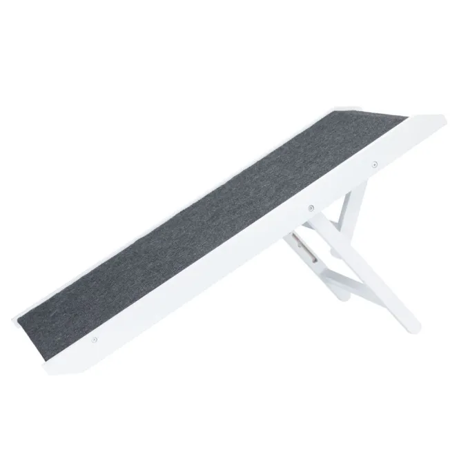 Entdecken Sie die smarte Lösung, die den Alltag Ihres Hundes oder Ihrer Katze spielerisch erleichtert – eine elegante, höhenverstellbare Rampe in reinem Weiß, speziell für den sicheren Einsatz im Innenbereich entwickelt.