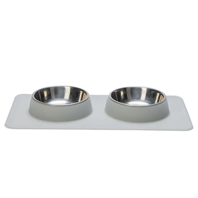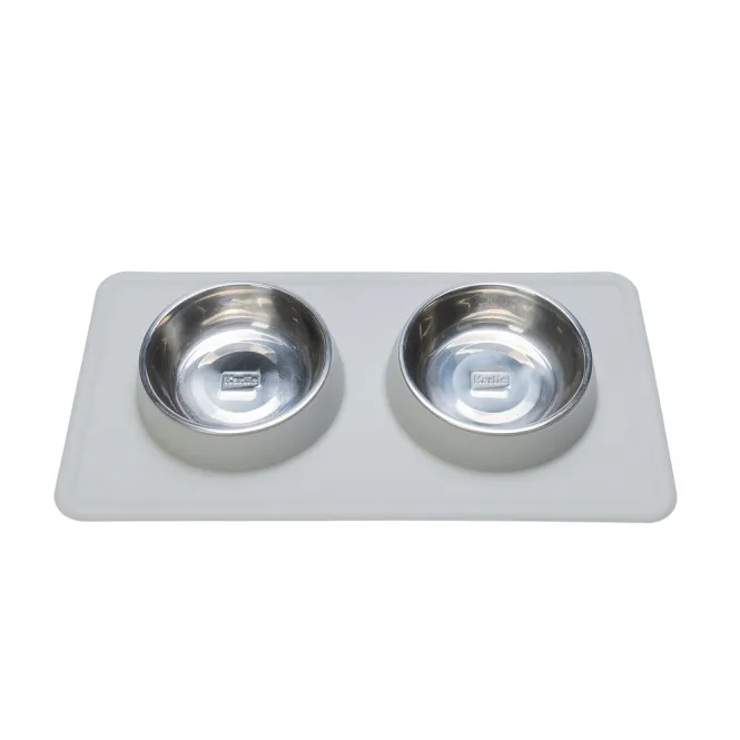Das Diner Set Dex vereint zwei herausnehmbare Edelstahlschüsseln in einem rutschfesten Silikonrahmen. So bleibt alles stabil auf dem Boden, selbst bei lebhaften Mahlzeiten. Edelstahl widersteht Gerüchen hartnäckig und lässt sich mühelos in der Spülmaschine reinigen – für hygienische Frische ohne Aufwand.