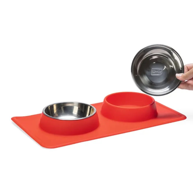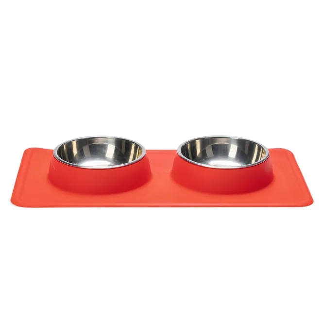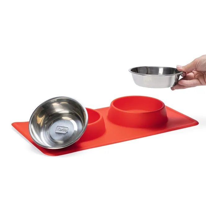 Der rutschfeste Silikonrand hält das Set bombenfest an Ort und Stelle, selbst bei ausgelassenen Fressattacken. Verschüttetes Futter oder Wasser? Kein Problem – die Silikonschale fängt alles auf und macht den Boden rundum sauber.
