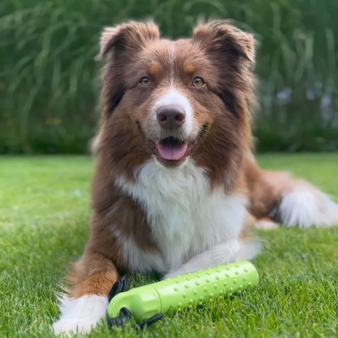Mit einer Länge von ca. 23,5 x 4,5 cm und einer bequemen Handschlaufe von 22 cm liegt er sicher in der Hand. Werfen Sie ihn weit, transportieren Sie ihn bequem – ideal für Apportierübungen, Agility oder einfach spielerisches Werfen. Die leuchtend grüne Farbe sorgt für gute Sichtbarkeit auf Wiese oder Feld.