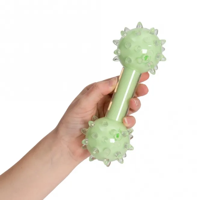 Entfache Abenteuerlust und Kauvergnügen mit dieser grünen Hantel, die durch frischen Minzduft und anregende Noppen deinen Hund stundenlang fesselt.