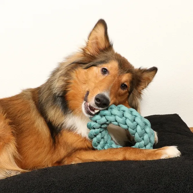 Bringen Sie ungebremsten Spielspaß in den Alltag Ihres Hundes mit diesem robusten Knotenring aus purem Baumwollzauber.