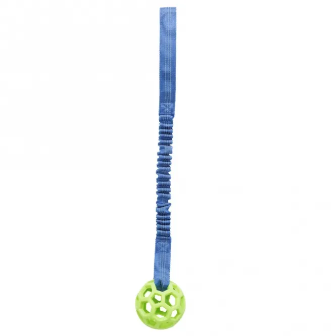 Der robuste Ball aus TPR widersteht selbst den wildesten Bissen, während der integrierte Ruckdämpfer aus Polyester für sanfte Züge sorgt und Gelenke von Hund und Halter schont. Mit einer Länge von rund 48 cm und einem Ball-Durchmesser von etwa 7 cm passt es perfekt in jede Pfotengröße. Farben variieren je nach Verfügbarkeit – für pure Action ohne Wartezeit.
