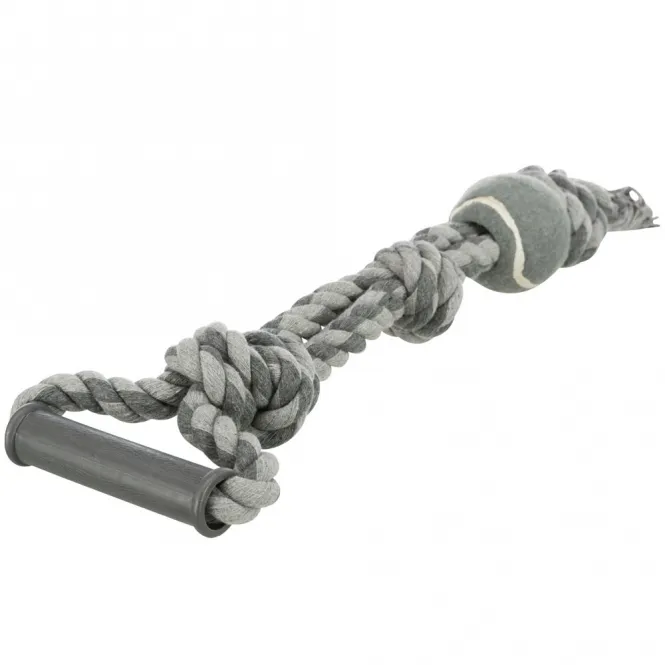 Das robuste Tau aus hochwertiger Baumwolle und Polyester überzeugt durch seine Langlebigkeit und greiftangene Haptik. Mit einer Länge von rund 50 cm bietet es perfekten Spielraum für Ziehen und Schütteln, während der Tennisball im hundgerechten Design – ohne schädliche Glasfasern – sicheres Apportieren ermöglicht. Der Ball mit etwa 6 cm Durchmesser passt ideal in jedes Hundemaul und rollt verlockend über den Boden.
