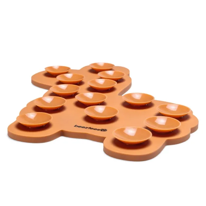 Die weiche Silikonoberfläche in ansprechendem Terracotta-Ton lädt zu ausdauerndem Lecken ein. Füllen Sie die geschickt platzierten Mulden mit feuchten Leckerlis oder Brei, und beobachten Sie, wie Ihr Kleiner konzentriert arbeitet, um jeden Krümel zu sichern. So wird schneller Fraß zur gemächlichen Mahlzeit, die die Verdauung optimal unterstützt.