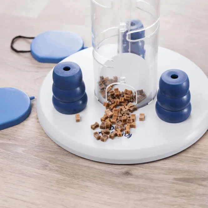 Dieses raffinierte Strategiespiel ist perfekt für erfahrene Vierbeiner, die neue Herausforderungen lieben. Der stabile Kunststoffturm mit drei cleveren Einschüben und drei umstürzbaren Kegeln wird zum Hotspot für spannende Suchspiele. Verstecken Sie Leckerlis Ihrer Wahl, und beobachten Sie, wie Ihr Begleiter mit Pfote und Schnauze die Schubladen in der richtigen Reihenfolge aktiviert – nur so purzeln die Belohnungen heraus.