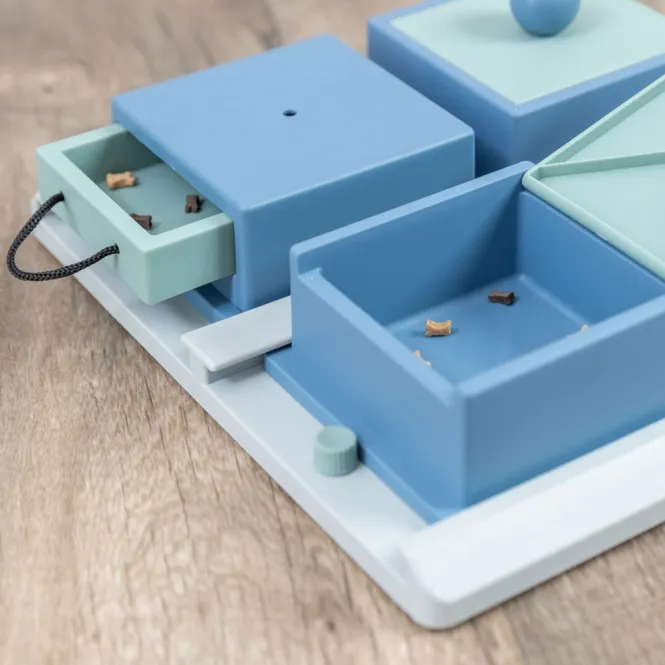 Ihr Vierbeiner wird zur Meisterdetektivin: Vier variabel zugängliche Fächer laden zu intensiven Suchspielen ein. Belohnen Sie Cleverness mit Leckerlis und beobachten Sie, wie List und Geduld die Schätze enthüllen. Ideal für Jung und Alt, trainiert es Konzentration und Problemlösung auf spielerische Weise.