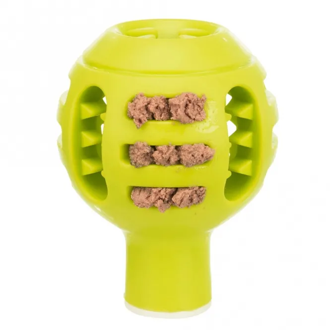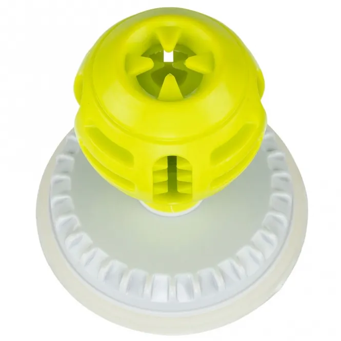 Das großzügige Innere nimmt reichlich Leckerlis auf, während seitliche Rillen perfekte Halterungen für Aufstriche wie Leberwurst bieten. Der kräftige Saugnapf fixiert den Ball sicher auf glatten Oberflächen – sei es in der Küche, im Bad oder auf Fliesen. Gefertigt aus robustem Kunststoff und TPR, erfüllt er höchste Tierschutzstandards und bleibt bei simpler Reinigung dauerhaft wie neu.
