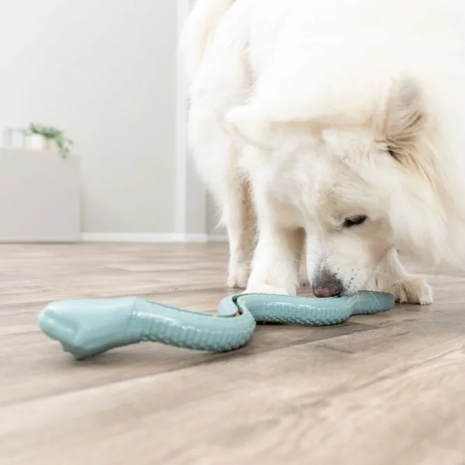 Aus hochwertigem thermoplastischem Gummi (TPR) gefertigt, bietet diese Schlange pure Kaulust gepaart mit smarter Snack-Aufnahme. Der geschickte Längsschlitz lädt zu cremigen Köstlichkeiten wie Leberpastete ein, die Ihr Hund mit Ausdauer herausfordert – ein Genuss, der uralte Jagdinstinkte weckt und trainiert.