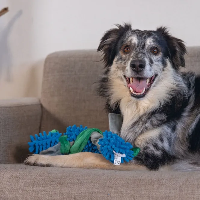 Stellen Sie sich vor, wie Ihr Vierbeiner begeistert auf das weiche Plüschtoy zustürmt – dank integrierter Knisterfolie und zwei quietschenden Squeakern wird jedes Werfen und Holen zu einem explosiven Abenteuer. Die sanfte Haptik lädt nicht nur zum wilden Apportieren ein, sondern verwandelt Pausen in kuschelige Entspannungsphasen. So fördert es spielerisch die Bindung und trainiert Ausdauer sowie Gehorsam auf natürliche Weise.