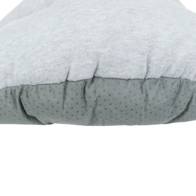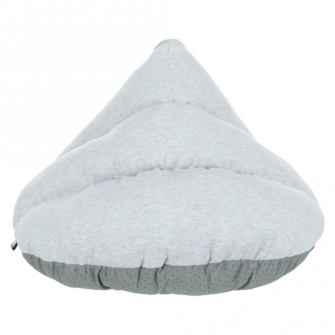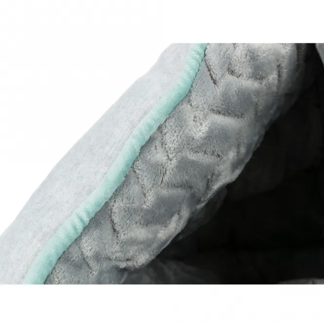 Der waschbare Bezug aus robustem Sweat-Material und Plüsch hält allen Welpenabenteuern stand. Mit Polyestervlies-Füllung bleibt die Form erhalten, auch nach mehrmaligem Waschen bei 30°C. Die frische hellgrau-mint Farbe passt harmonisch in jedes Zuhause.