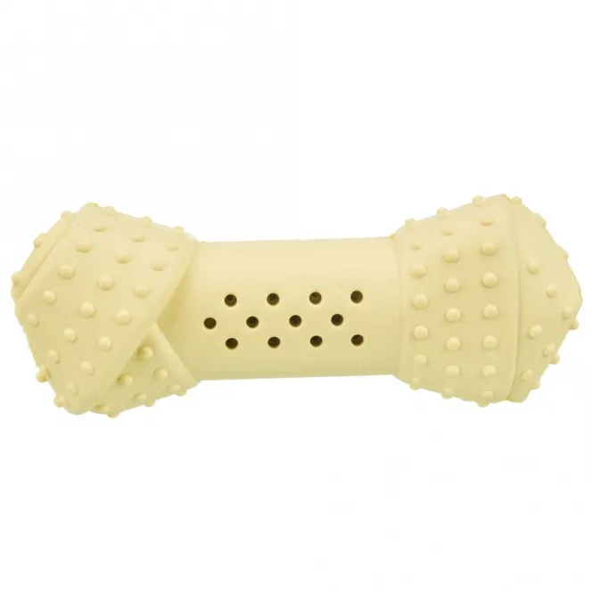 Hergestellt aus robustem Naturgummi, saugt dieser Knochen Wasser auf und speichert es geschickt. Beim spielerischen Kauen entweichen kühle Dampfströme durch feine Löcher – für einen belebenden Frische-Kick, der Hitze und Langeweile vertreibt. Einfach vor dem Frieren in Wasser tauchen, und schon ist er bereit für actionreiche Abenteuer.