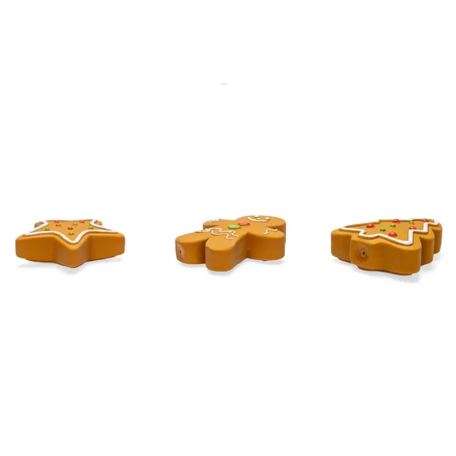 Die Lebkuchen-Gestalt in kompakter Größe von 10 x 9 x 2,5 cm liegt ideal in der Pfote und passt zu kleinen bis mittelgroßen Hunden. Robust gebaut für stundenlanges Toben, ohne schnell kaputtzugehen.