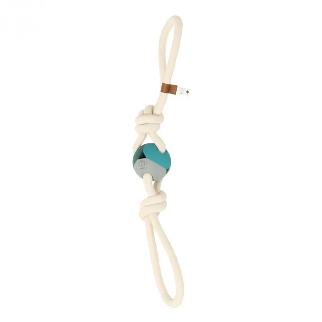 Entfachen Sie Abenteuerlust in trendigem Lagoon-Blau: Dieses robuste Spielzeug aus Naturkautschuk und purem Baumwollseil macht jeden Tag zum Highlight für Ihren Vierbeiner.