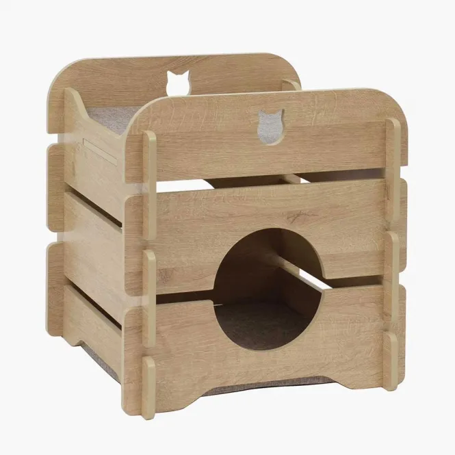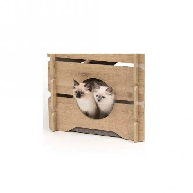 Schaffen Sie einen idyllischen Zufluchtsort für Ihre Katze – im charmanten Landhausstil mit warmer Eichenoptik.