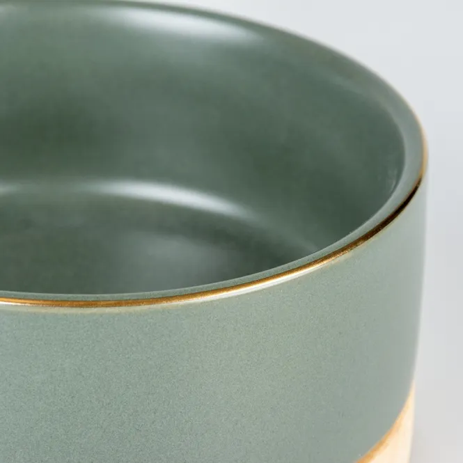 Erleben Sie, wie natürliche Eleganz und praktische Robustheit in diesem dunkelgrünen Keramiknapf mit Holzsockel aufeinandertreffen – perfekt für anspruchsvolle Haustierhalter.